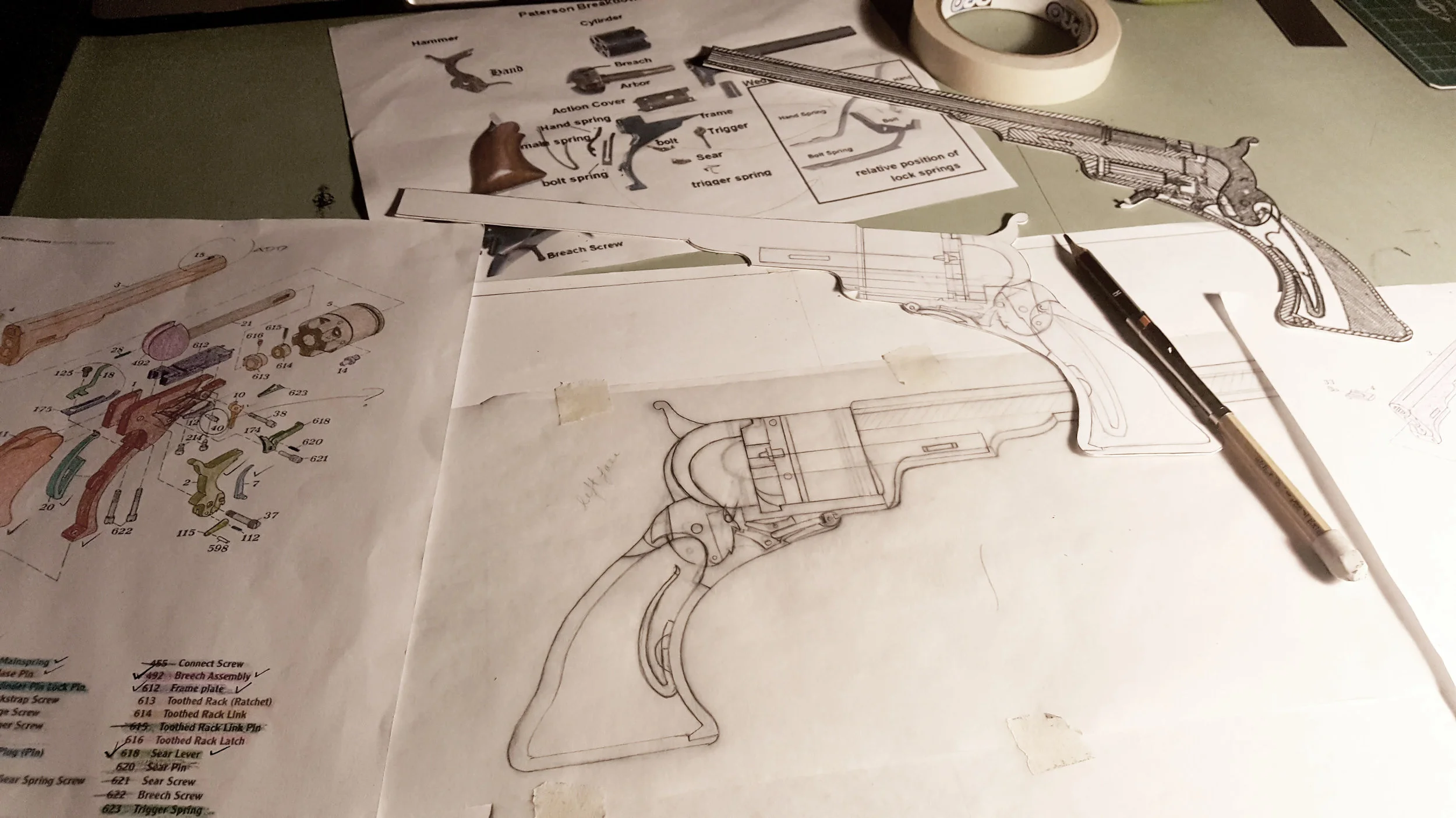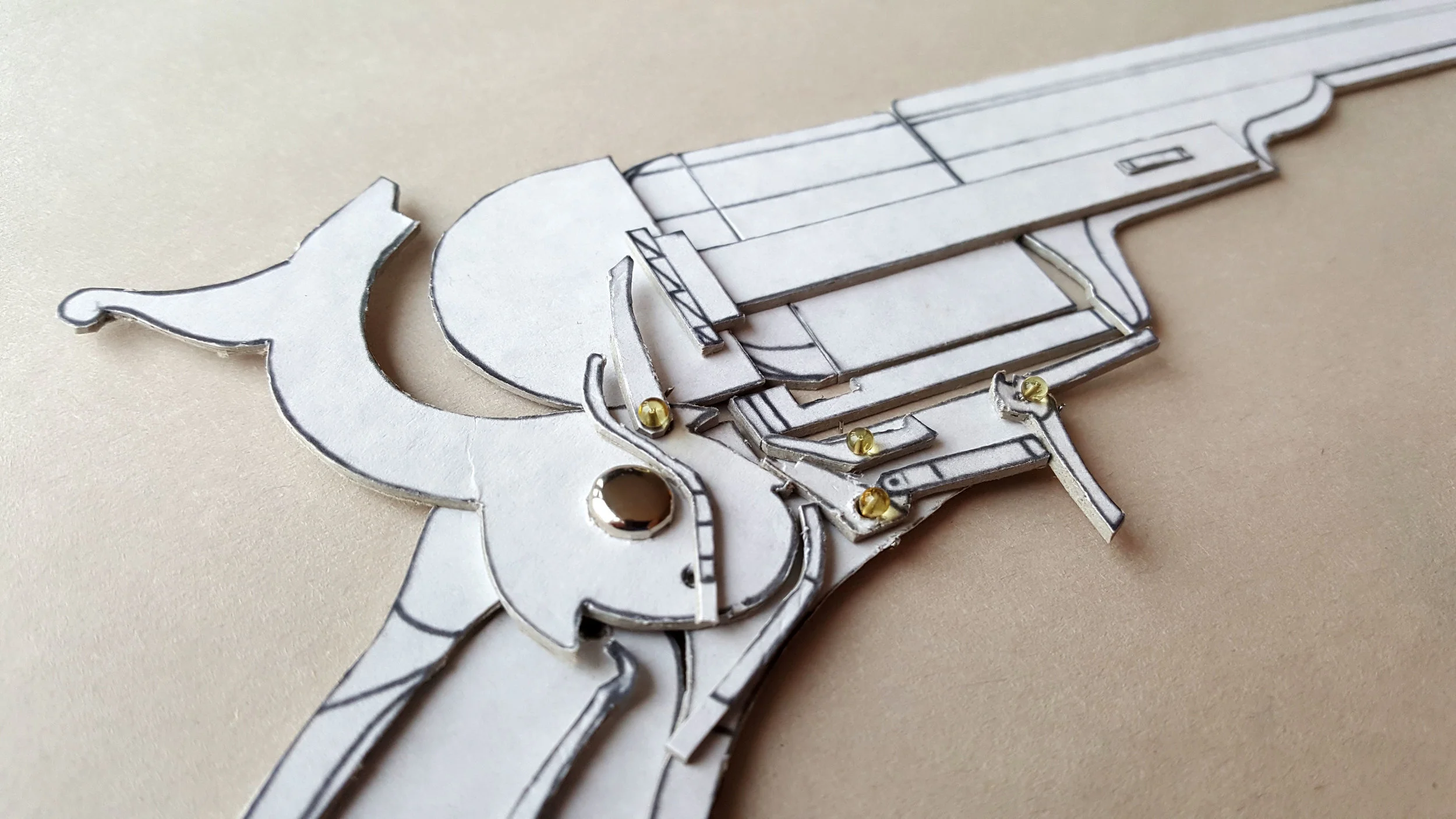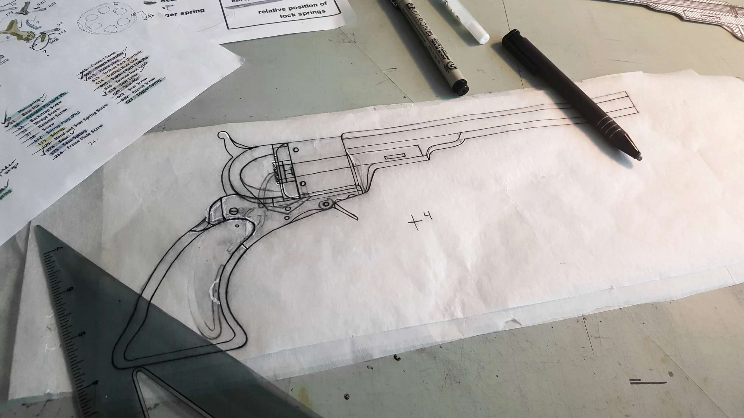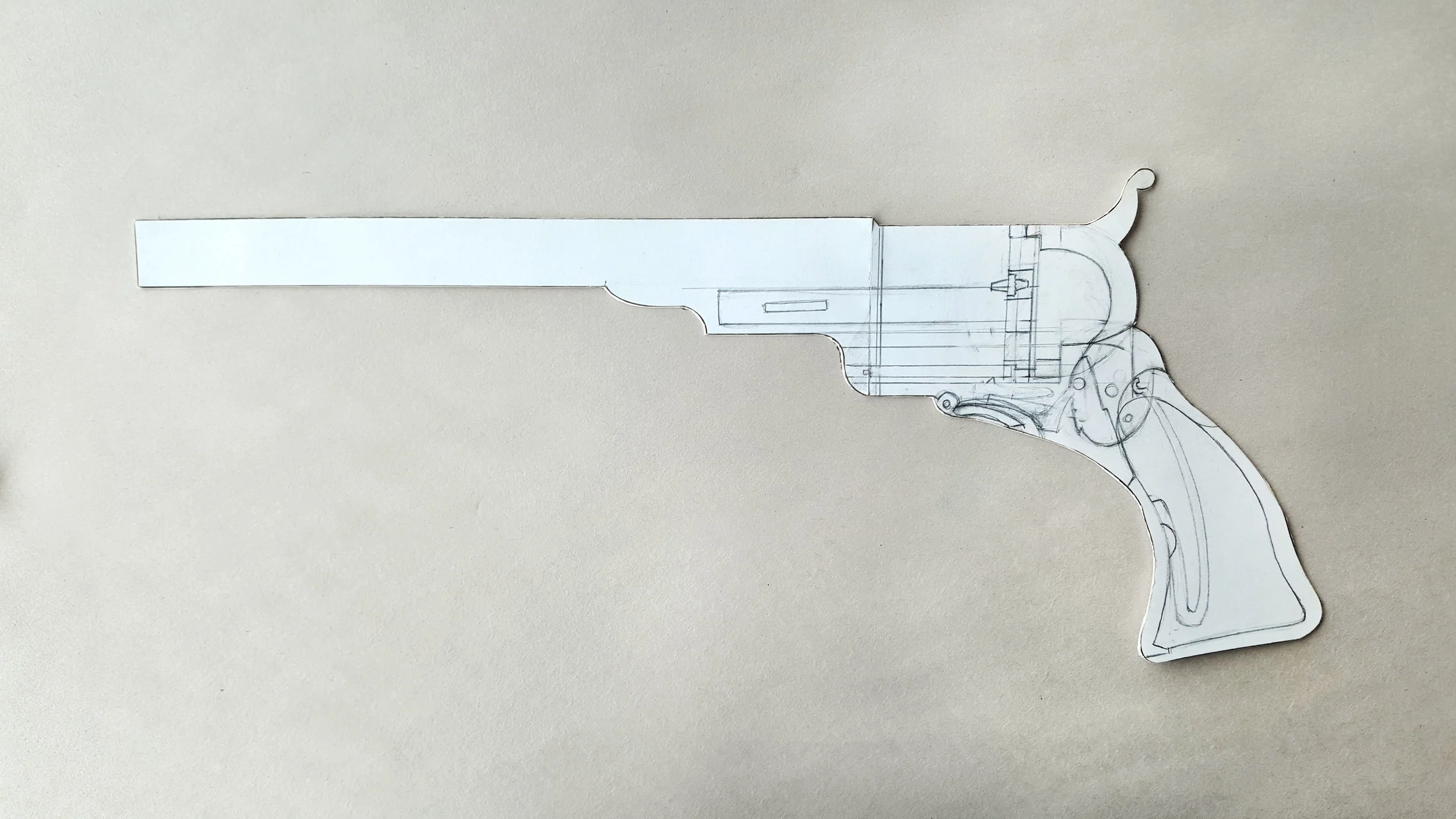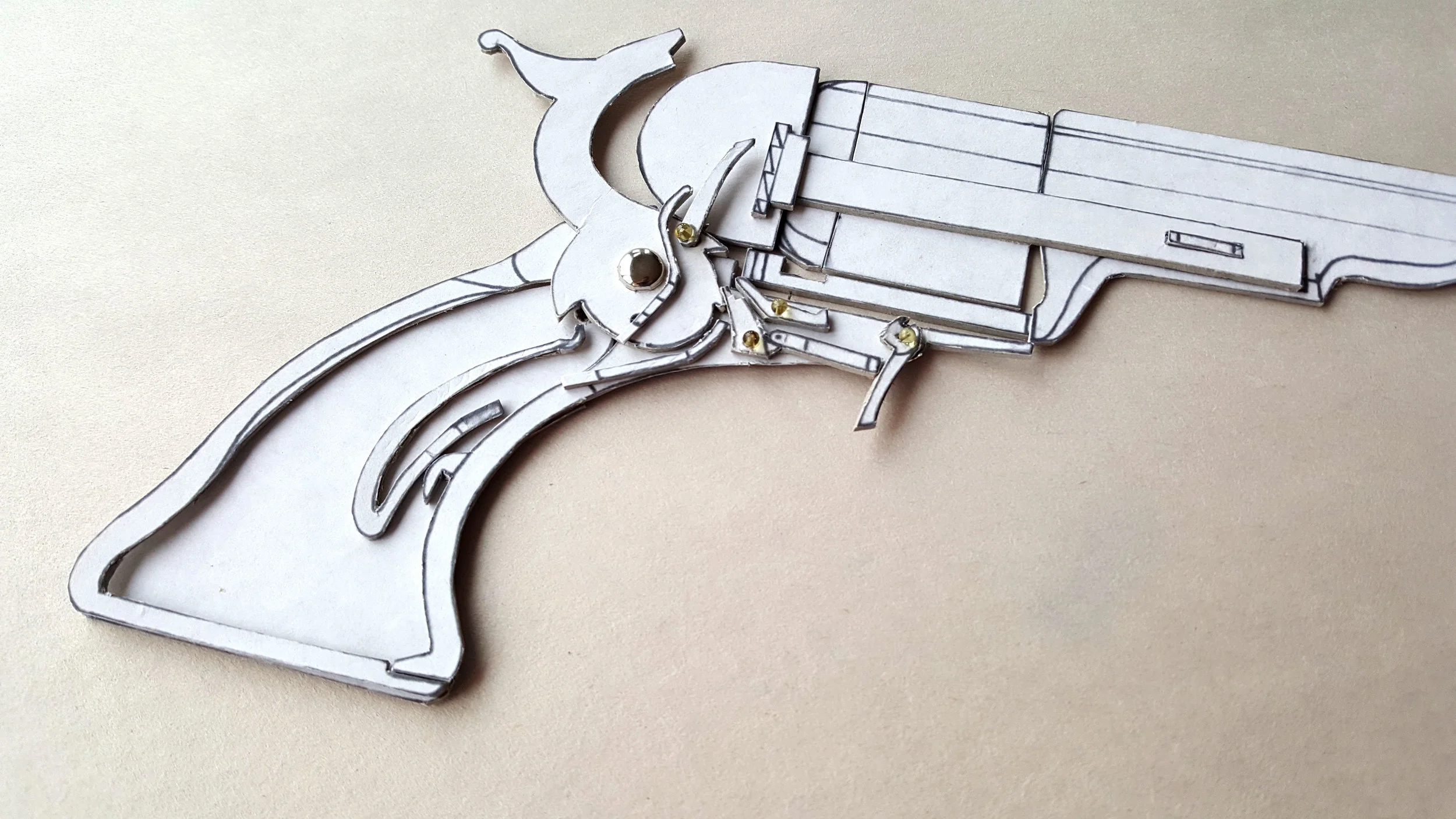In an effort to learn more about the mechanical function of a revolver and understand how revolvers have evolved over the past two centuries, I reverse engineered the Colt Paterson No. 5 until I was able to produce a nearly functioning 2D cardboard model. While I was unable to successfully replicate the parts with 100% accuracy according to a Chicago firearms expert, I was still able to create a functioning mechanism nonetheless.